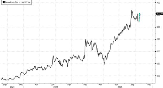 In markets, Broadcom shares jumped nearly 10%. Year to date, shares are up 48%.