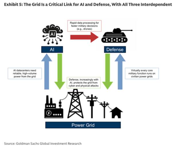 The analysts argue that power grids are the most "critical link" for AI and defense, with all three intertwined, making the grid a national security priority.