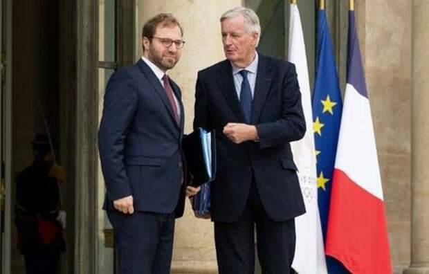 Michel Barnier, right, with Finance Minister Antoine Armand in Paris on Oct. 15