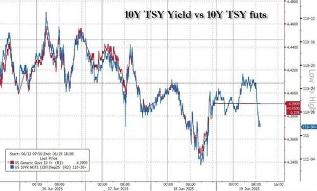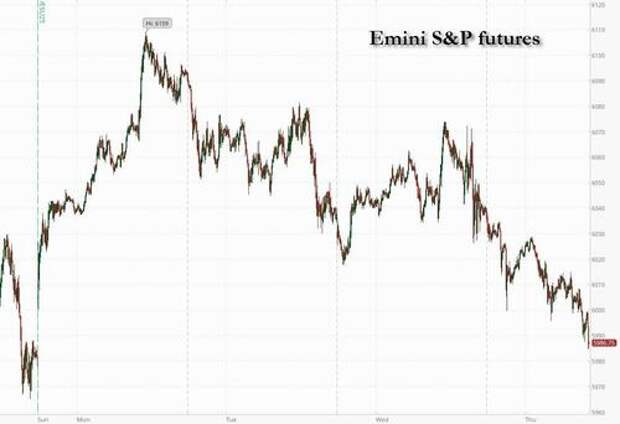 US equity futures tumbled amid mounting speculation the US will join Israel's war against Iran some time this weekend, fueling uncertainty and concerns about the inflationary impact of higher crude prices. S&P and Nasdaq 100 futures tumbled 0.