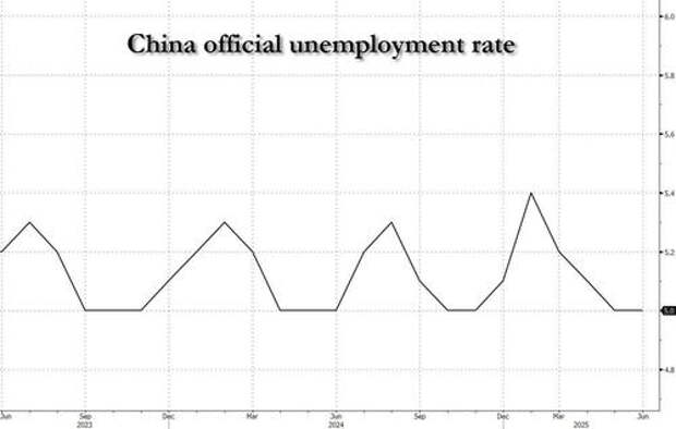 Remarkably, other than a 5% cut acknowledged by Longi last year, none of the firms mentioned above have announced any job cuts or responded to questions from Reuters. Meanwhile, amid tens of millions of wholesale layoffs which are not logged in any official statistics, China continues to pretend that its unemployment rate is 5%, and hasn't budged in 5 years.
