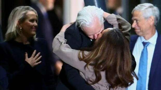 Assange raised his fist on the tarmac, and lovingly embraced his wife Stella and his children and family. His guilty plea arrangement with the United States was a success.
