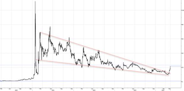 Today's squeeze has anyone shorting the stock panicking. They are also left in disbelief that one tweet from a meme trader can spark so much volatility. This adds to the 57% monthly gains already recorded as of Friday's close.
