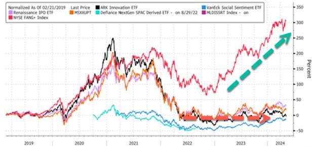After meme stocks and other profitless companies have been dormant since 2022 collapse, primarily because of tightening financial conditions surrounding Fed Powell's rate hiking cycle. The one big question we ask: Are the meme stocks back?
