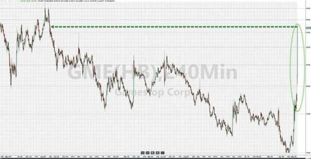 Update (1000ET): GME is now up 110% on the day, back to its highest since August 2022...