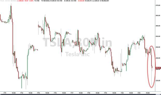 With the stock soaring in the past month, if sliding modestly in the the past week, TSLA shares dipped as much as 4% after hours before recovering some of their losses to last trade around $237.