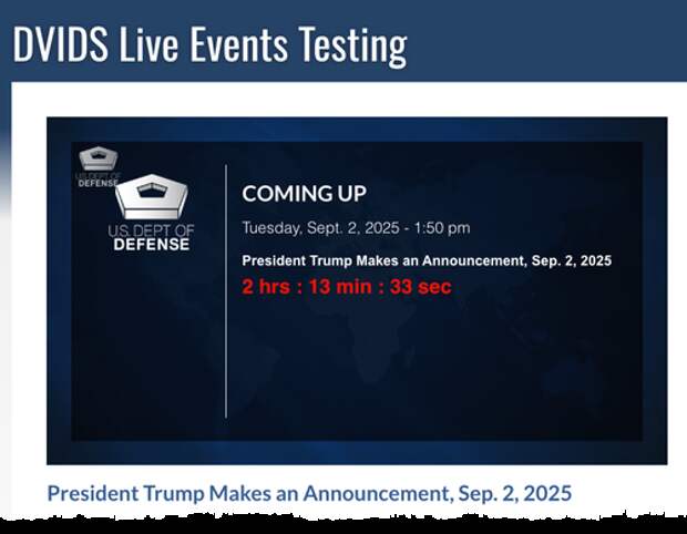 The Defense Department's DVIDS website states that President Trump is scheduled to make a major announcement today at around 1:50 p.m. EST. While details remain scarce, a Reuters report indicates the announcement will concern relocating Space Command from Colorado Springs to Huntsville.