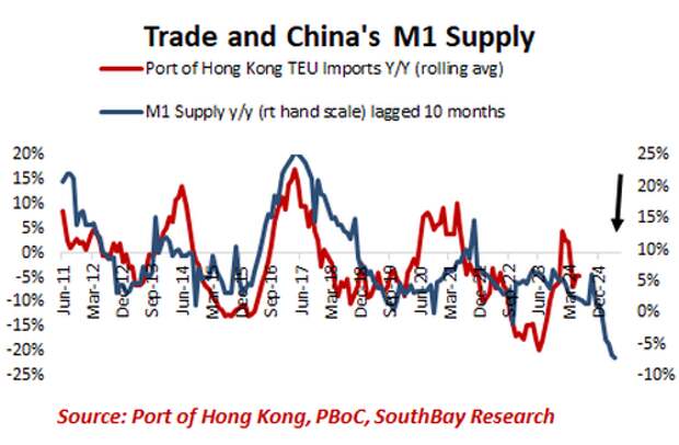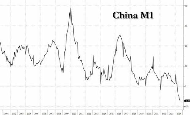 Meanwhile, China's broadest monetary aggregate, M1, is falling at the fastest pace on record.