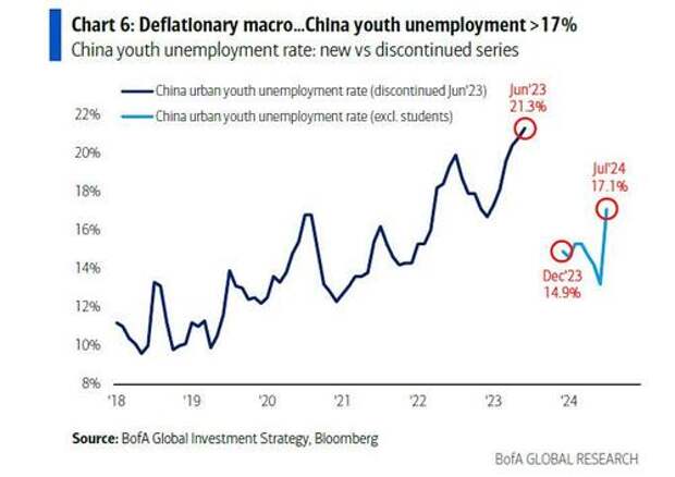 The Chinese economic miracle is fading. Unemployment is 5.3% in the cities and 17% among youth 17-24 years old (ex students). Goldman, Citi, JP Morgan are all expecting growth of