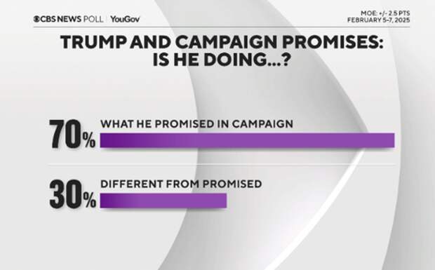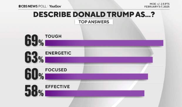 With most describing him as "tough," "energetic," "focused" and "effective" — and as doing what he'd promised during his campaign — President Trump has started his term with net positive marks from Americans overall, in our first CBS News polling since he returned to office.… pic.twitter.com/ZYKPscvS0G