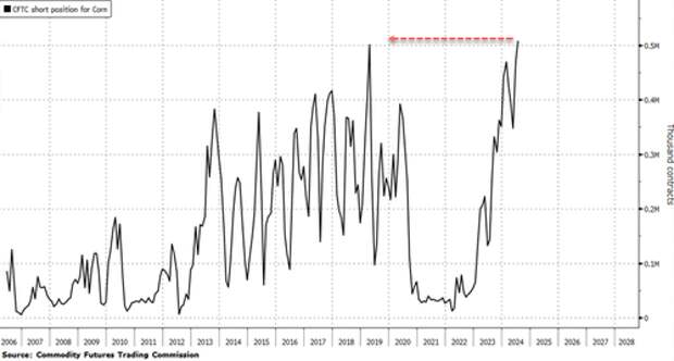 Bloomberg data reveals that money managers have boosted their short-only positions in Chicago corn futures and options to 507,901 contracts, exceeding the previous record of 506,000 contracts in 2019.