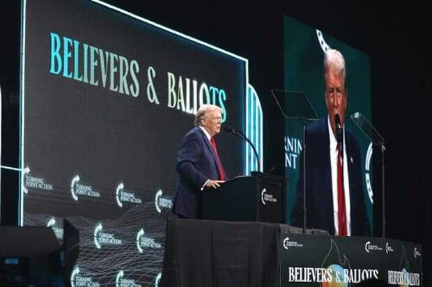 Trump addressing The Believers religious group, in July in West Palm Beach, Fla. (Gage Skidmore, Flickr, CC BY-SA 2.0)