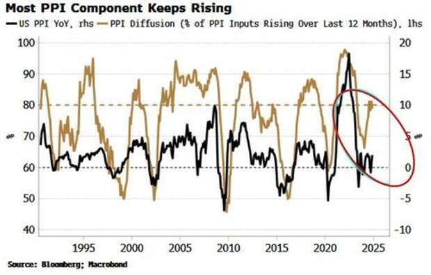 As the chart shows, this is typically consistent with PPI remaining elevated.