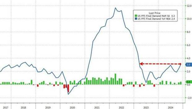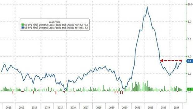 Core PPI (ex-food and energy) rose 0.2% MoM as expected but the YoY core PPI jumped dramatically to +3.4% YoY - also the hottest since Feb 2023...