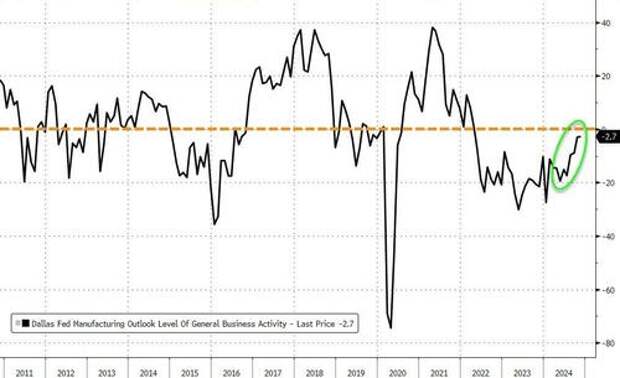 On a more local level, the Dallas Fed Manufacturing index rose to -2.7 (from -3.0) - although that was worse than the -1.8 expected. The headline index has now been negative (contracting) for 31 straight months...