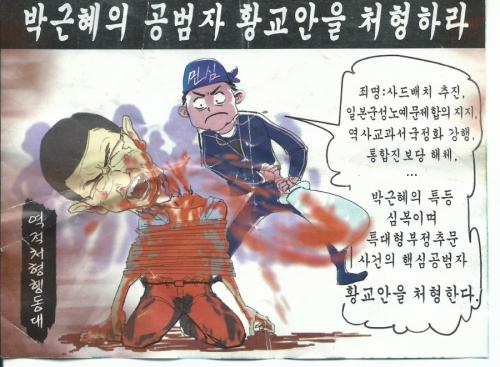 A graphic decapitation of then-Prime Minister Hwang Kyo-ahn.