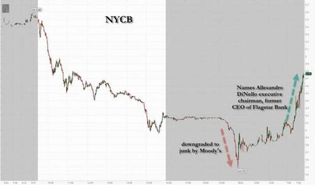 After the closing bell, Moody's downgraded New York Community Bancorp's long-term debt rating by two notches from Baa3 to Ba2 and into HY territory. It remains on watch negative. Its shares fell another -15% after the bell. So certainly one to watch today. This story doesn't feel like it's over in terms of wider market attention by a long stretch.