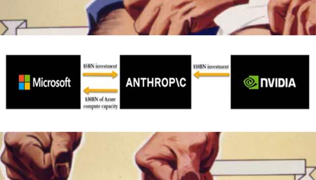 Bloomberg reports Microsoft and Nvidia will invest up to $15 billion in Anthropic. As part of the agreement, Anthropic will purchase $30 billion of compute from Microsoft's Azure, which only confirms more circle-jerking.