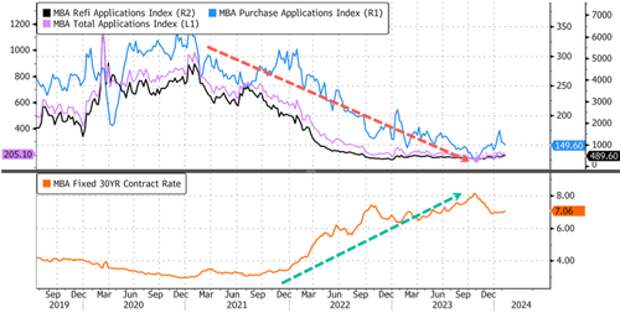 Elevated mortgage rates have pushed mortgage applications to a multi-decade low.