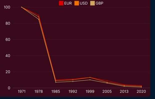 Fifty-four years later, your dollar has lost 99% when measured against gold.