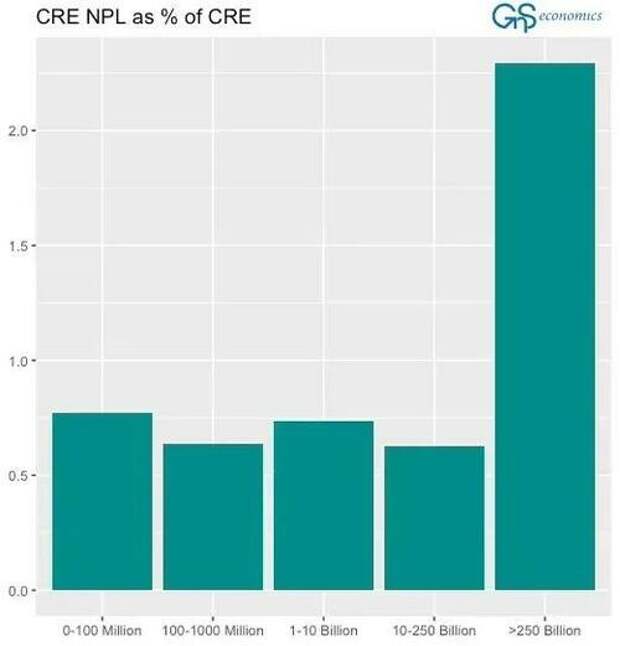 The issues with CRE loans have been circulating for some time, but the narrative often focuses on community banks. However, as we observed, identifying the weak links in the banking sector is not straightforward. Small and medium banks undeniably have a higher exposure to commercial real estate (CRE) compared to large banks, but they also have lower levels of non-performing loans.