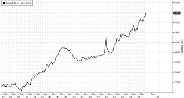 S. beef supplies. The latest USDA data shows retail ground beef prices have surged above $6 per pound—a new record high.However, there is good news: the globalist meatpacking giant JBS CEO revealed weeks ago that the U.S. cattle industry is in the beginning stages of rebuilding. Read more here.