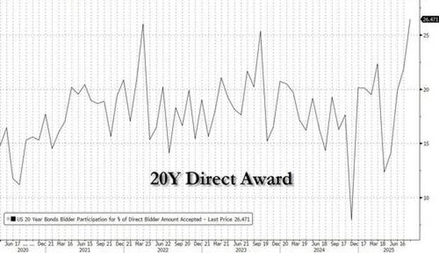 The internals were on the weak side, with foreign buyers stepping back as Indirects took down just 60.6%, down from 67.4% and the lowest since Feb 24. And with Directs stepping up to buy a record 26.5% of the auction...
