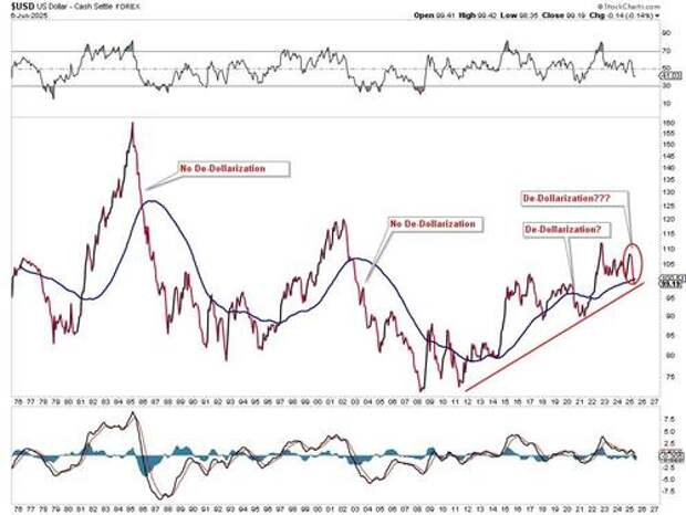 However, the dollar’s death narrative persists due to recent decoupling trends. Yields rose as the dollar weakened in early 2025, driven by fiscal concerns and tariff uncertainty. These recent concerns will pass, but the dollar’s role as a reserve currency for world trade will not.