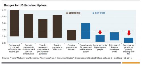 This is a big problem – particularly if the administration hopes to come anywhere near the 2.9% rate of GDP growth sustained over the next 10 years, a feat that would amount to the longest period without a recession in US history. That’s because when the wealthy receive tax breaks, they tend to save the money instead of putting it to productive use – at least at first - as we discussed last week.