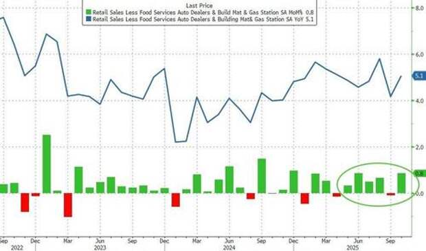 That MoM jump leaves sales up a strong 5.1% YoY and while the 'k-shaped' economy continues to weigh on market sentiment, it is not evident in the aggregate data and supports solid Q4 GDP growth.