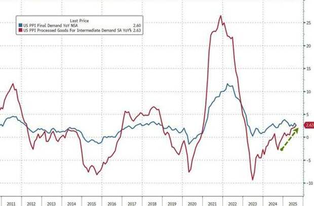 However, amid all the Trump Tariff tantrums, the headline PPI print FELL 0.1% MoM (yes, deflation) and July was revised down to +0.7% MoM, smashing PPI YoY down to +2.6% (3.3% YoY exp)...