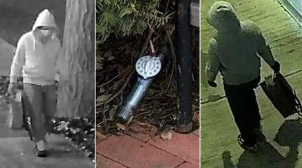 At 4:05 of the Massie video (top one from Mr. Beattie’s “X” feed), someone at DC Metro Police headquarters by remote control pans the closed-circuit camera toward the bench itself and zooms close-up (4:17) to the pipe-bomb (still photo above).