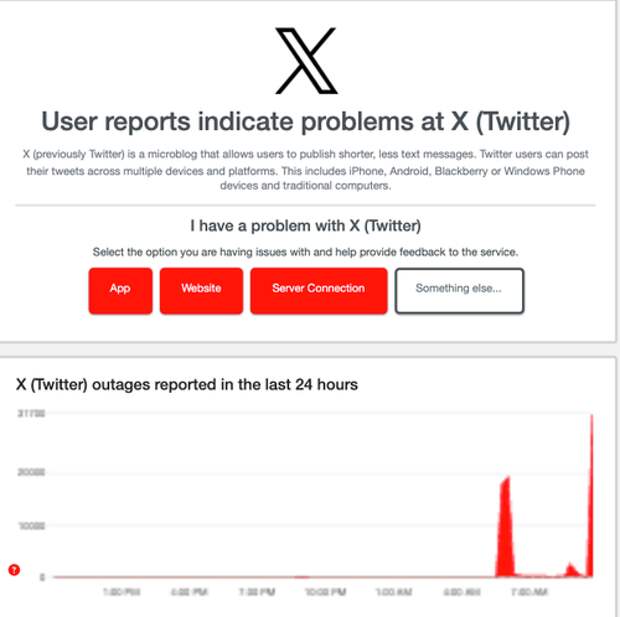 The website tracker DownDetector shows a surge in users reporting that Elon Musk's X platform is down.
