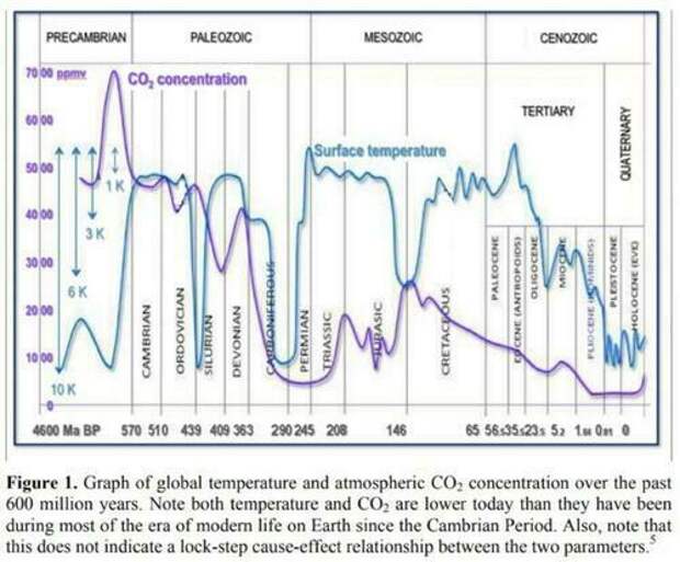 And, if we look at the behavior of the carbon content of the Earth's atmosphere over this same time period, it's obvious that there is no correlation between rising carbon and rising temperatures.