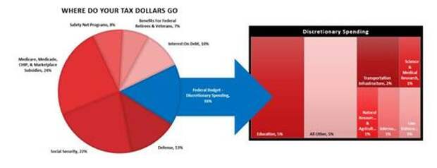 According to the Center On Budget & Policy Priorities, in 2023, roughly 90% of every tax dollar went to non-productive spending.