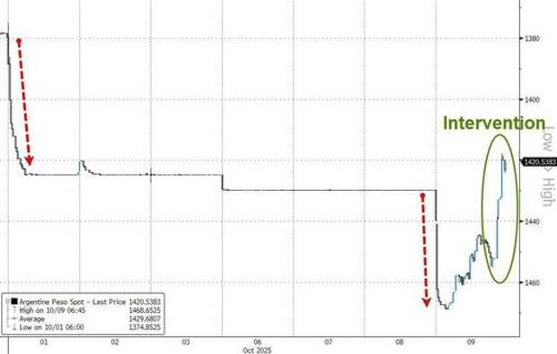 It did just that moments ago when US Treasury Secretary Scott Bessent said he had "finalized a $20 billion currency swap framework with Argentina’s central bank" adding that the U.S. Treasury "is prepared, immediately, to take whatever exceptional measures are warranted to provide stability to markets." That much was expected, and was already discssed previously. More importantly, Bessent noted that today the US "directly purchased Argentine pesos" which will likely spark outrage among those wondering how bailing out Argentina is part of the "America First" agenda, especially when Argentina had been quietly exporting soybeans to China while US farmers are stuck nursing huge losses, now that China is no longer a key customer, and is instead purchasing from such countries rescued by the US as... Argentina.This is what Bessent wrote moments ago on X: