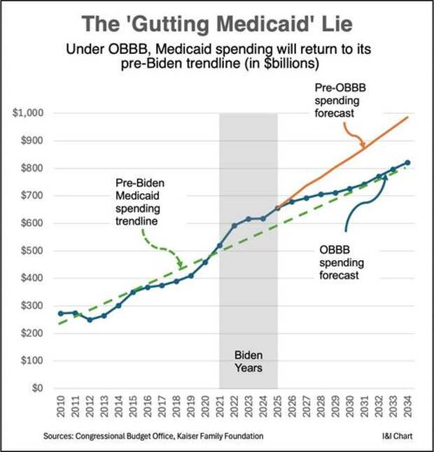 The OBBD doesn’t cut Medicaid. It just (eventually) restores the program to its previous (unaffordable) trajectory.