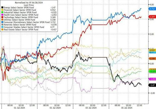 Which led Consumer Discretionary and Tech higher while Energy stocks were sold...