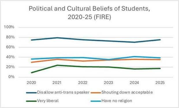 What explains the sudden reversal of trans and queer? It's not because the kids became less woke, more religious or more conservative. Those beliefs remained stable throughout the 2020s.