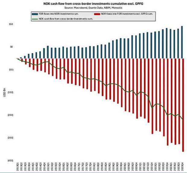 This has resulted in a large krone capital flight out of Norway, so much that it explains the broader part of the krone's weakening.