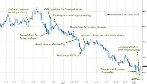 The Xi-Briefing was the final headline in a day full of jawboning which included sovereign fund Central Huijin (translation: the plunge protectors) vowing to buy more ETFs, and China’s securities watchdog vowing to 'guide' (translation: coerce) institutional investors and funds to increase their A-share holdings.
