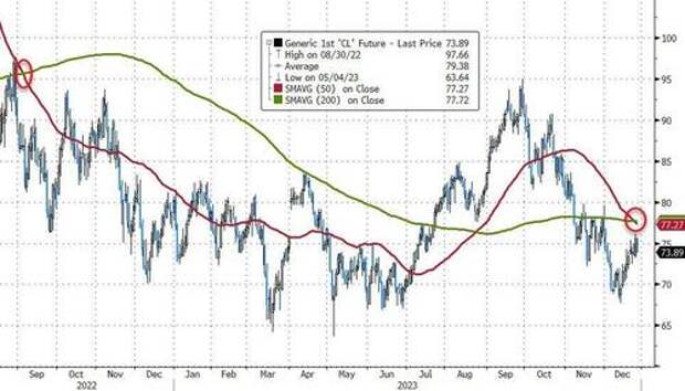 Finally, we note that WTI suffered a 'death cross' today - the first since Sept 2022 - with the 50-day moving average for WTI crossing below the 200-DMA.