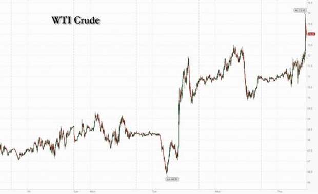 Crude oil prices spiked on the news, having already jumped about 5% in the past three days.