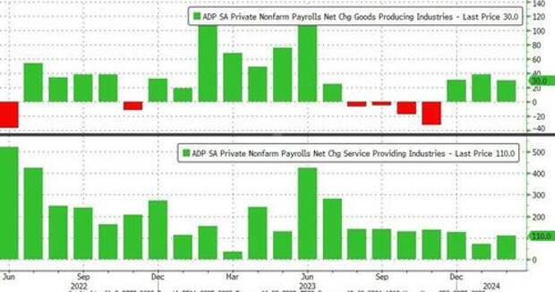 Job gains in Services once again dominated Goods-Producing firms, but both saw increases in February...