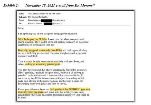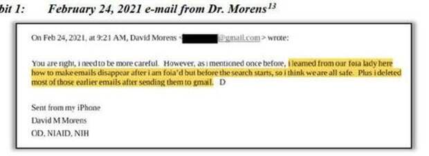 In one particular email, Morens noted that he was seeking help from “our IT folks” and “our FOIA lady” on “how to make emails disappear.”