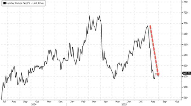 Now the FOMC is preparing for an interest rate decision next month.On Thursday, lumber futures for September delivery traded around $604 per thousand board feet, down about 14% from the settlement of $695.50 per thousand board feet on Aug. 1.