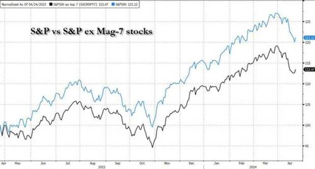 Alas, none of that is accurate, relevant or actionable: in fact, concentration in the largest stocks has been far higher late in 2023 and earlier this year, and the result has already been felt following the recent Nasdaq drubbing, which hammered not only the Mag 7s but everything else too.