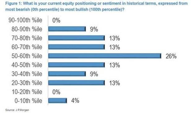 And if that wasn't enough, a chart showing how clients view their own equity positioning/sentiment in historical terms, reveals a perfectly balanced, if somewhat bearish distribution.