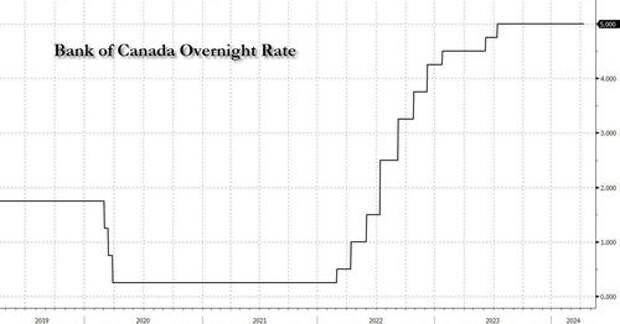 The BoC keeps rates unchanged for a sixth consecutive meeting even as officials signaled they're getting closer to rate cuts but - like the Fed - need more evidence of slowing inflation. The Canadian central bank left the benchmark overnight rate unchanged at 5% on Wednesday, a move which was expected by markets and by economists in a Bloomberg survey.