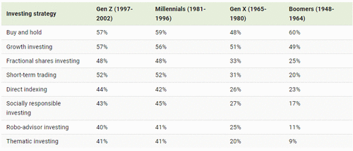 When it comes to investing, each generation has their own mix of strategies, and younger generations like to try a bit of everything.